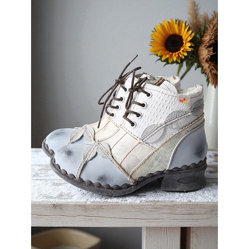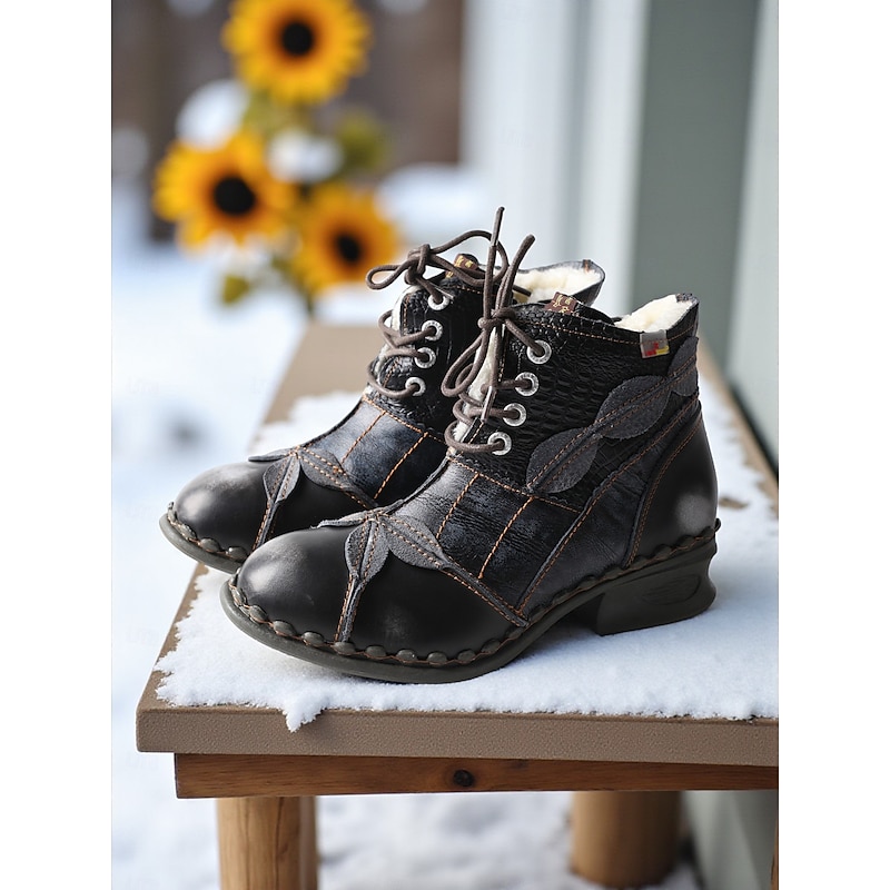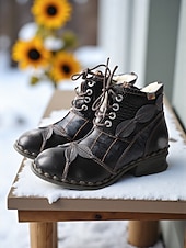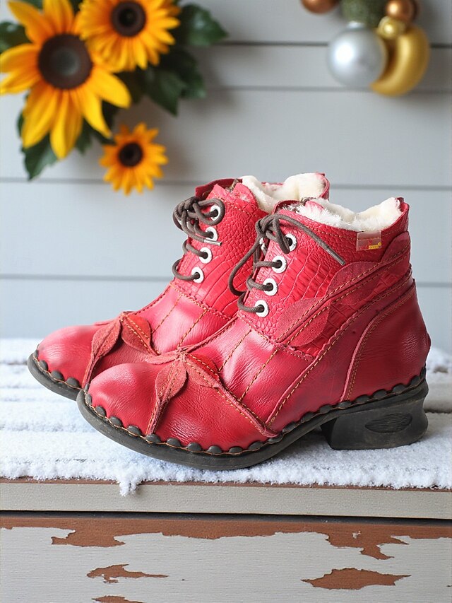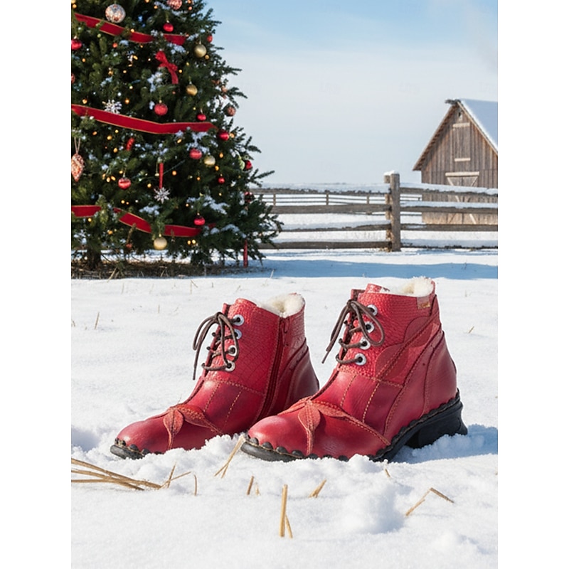 $84.99 - Women's Red Genuine Leather Lace-Up Ankle Boots with Unique Folded Toe Design, Warm Fleece Lining, Retro Casual Boots for Winter Outfits & Outdoor Wear 2025. Shop for cheap Women's Christmas Shoes online? Buy at lightinthebox.com on sale today!