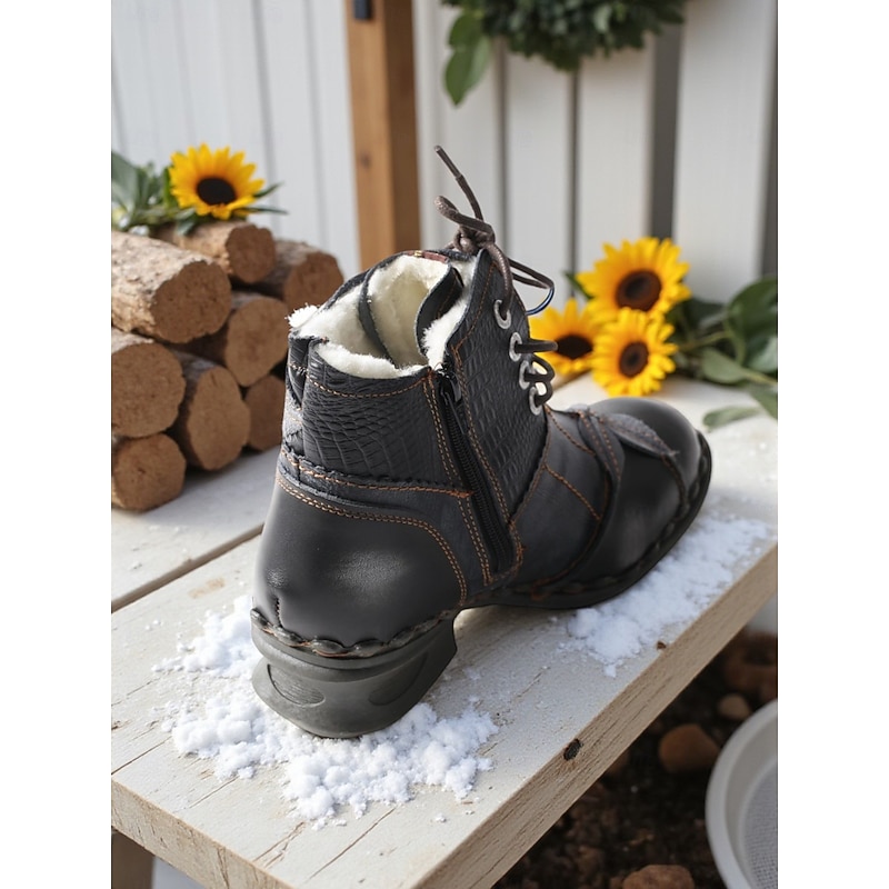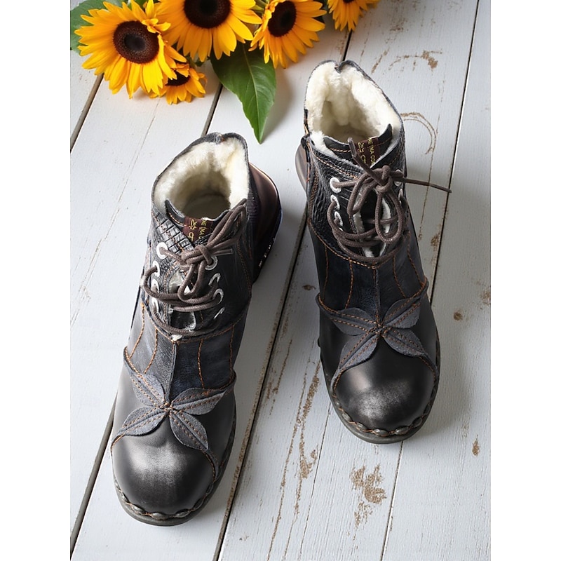 More information about Women's Red Genuine Leather Lace-Up Ankle Boots with Unique Folded Toe Design, Warm Fleece Lining, Retro Casual Boots for Winter Outfits & Outdoor Wear