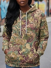 More information about Women's Pullover Hoodies Graphic Paisley Vintage Streetwear Casual Long Sleeve Hooded Regular Tops Dailywear Casual Sports Drawstring Pocket Print Green Spring Fall