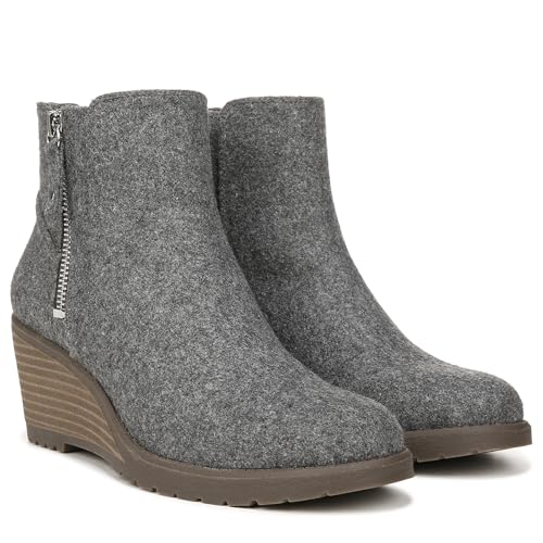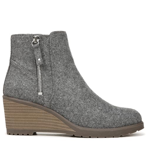 Origin: ImportedSole material: Synthetic RubberShaft height: AnkleShaft circumference: 11.61 InchesSustainable craftsmanship: Linings and topcloth partially made from recycled plastic bottles, recycled toe box and heel counterMaterials: Bootie featuring faux leather and wool blend made from recycled plastic bottles or ReFiber Microfiber made from recycled plastic bottlesFitting features: Outside zipper for easy on/offComfortable insoles: Anti-odor Insole Technology with cushioning, comfort, and support. Insoles crafted with cushy, algae-infused BLOOM foam for cleaner air and waterLightweight and flexible construction: Moves with youStylish design: Wedge bootie with wraparound strap, iconic Dr. Scholl's buckle, and 2 1/2 inch stacked wedge heel Perfect for everyday use. superior materials and excellent craftsmanship ensure long-lasting durability.