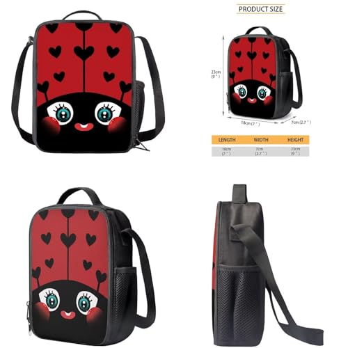 HOT ! Cute Ladybug Backpack for Girls with Lunchbox Lightweight Toddler Bookbag Set with Pencil Case Casual Daypack Travel Bag 12" School Supplies Bag for Students