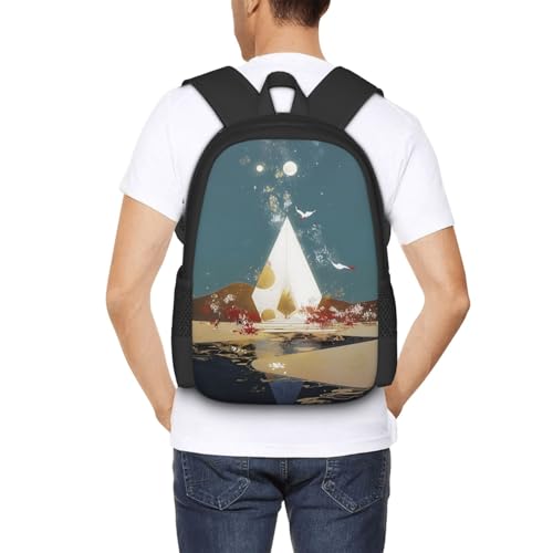 HOT ! Stylish Unisex 17 Inch Backpack Moon Crane Pyramid Lake Spacious Compartments for Work Essentials Casual Outings & Trips
