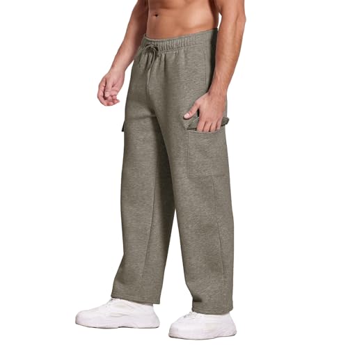 HOT ! Baggy Sweatpants Men Wide Leg Heavyweight High Waisted Drawstring Cargo Pants Outdoor Athletic Joggers with Pockets