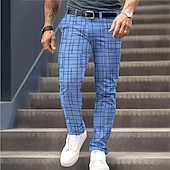More information about Men's Geometric Grid / Plaid Dress Pants Trousers Suit Pants Mid Waist Business Casual Formal Dailywear Slim Fit Pants with Pockets Spring Fall 3D Print Blue