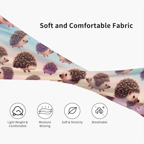Boys Girls Sports Sweat Band, Boho Style Elastic Head Ribbon for Running Fitness Spa, Beauty Skinny Cute Hedgehogs Art Headwear Hand Decor 6