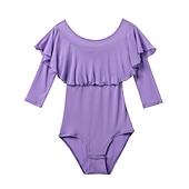 More information about Latin Dance Activewear Leotard / Onesie Ruffles Ruching Pure Color Women's Performance Training Half Sleeve High Cotton Blend