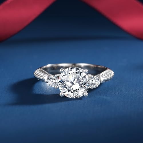 Moissanite Rings for Women 3 Stone Engagement Promise Rings S925 Sterling Silver 18K White Gold Plated Rings for Wedding Anniversary 4