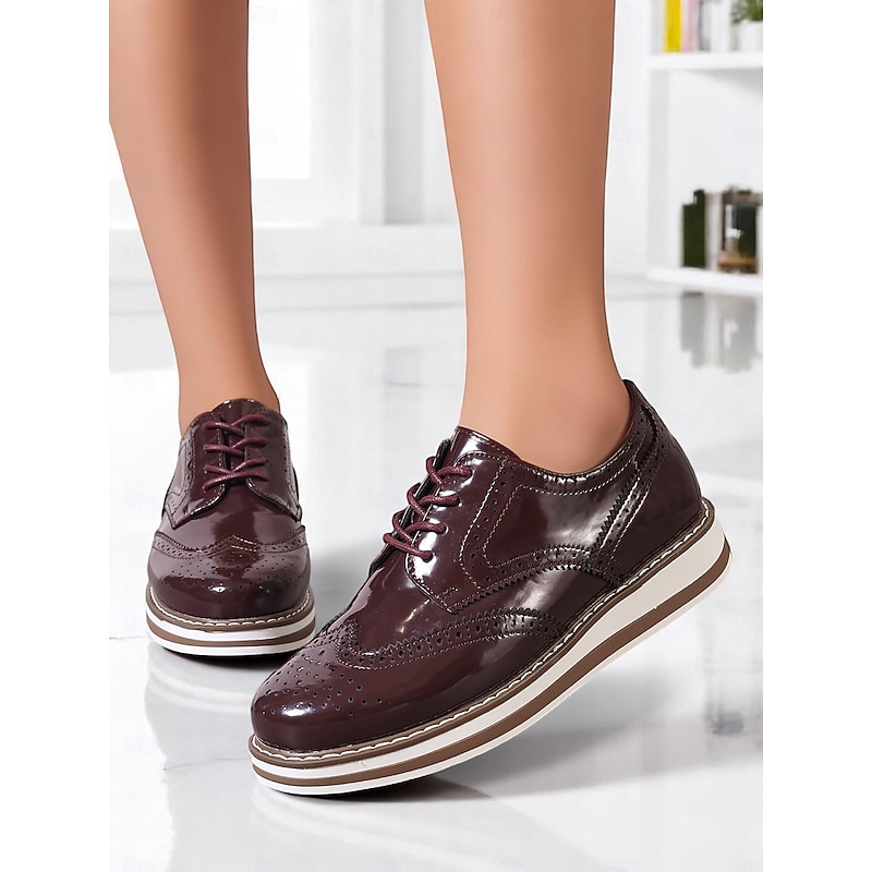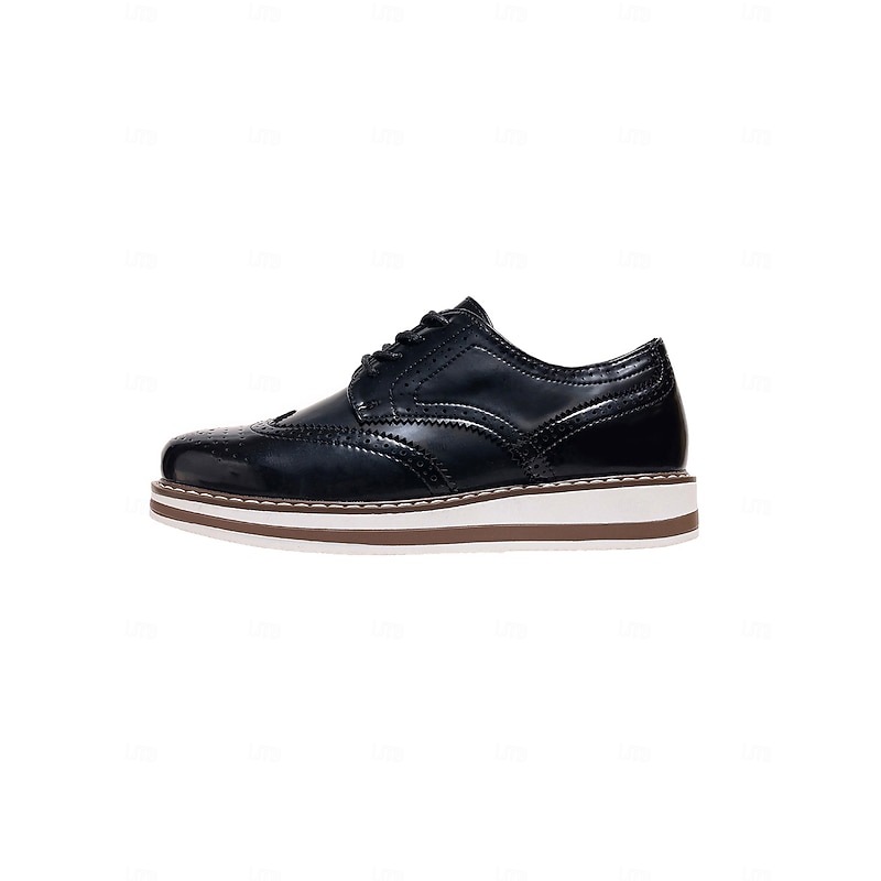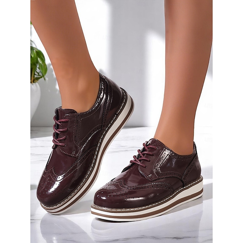 HOT ! Women's Patent Leather Wingtip Oxford Platform Shoes – Classic Brogue Lace-Up Flats for Adult Women, Ideal for Office Work, Business Meetings, Walking Commute & Smart Casual Wear