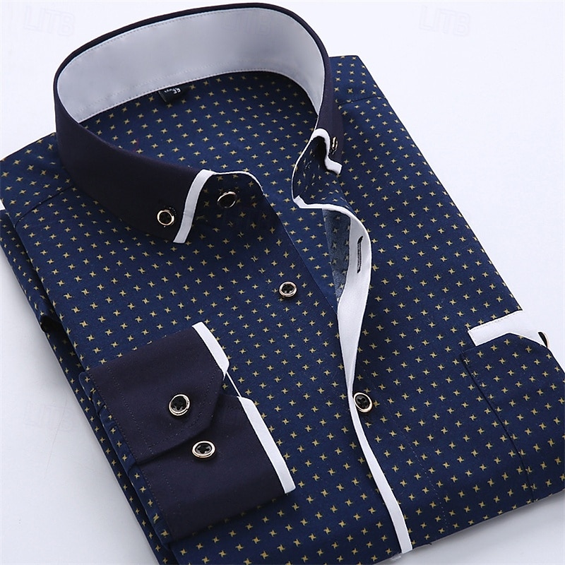 Men's Dress Shirt Button Down Shirt Collared Shirt Polka Dot Wedding Outdoor Black White Red Navy Blue Long Sleeve Turndown Summer Spring Clothing Apparel Print 17