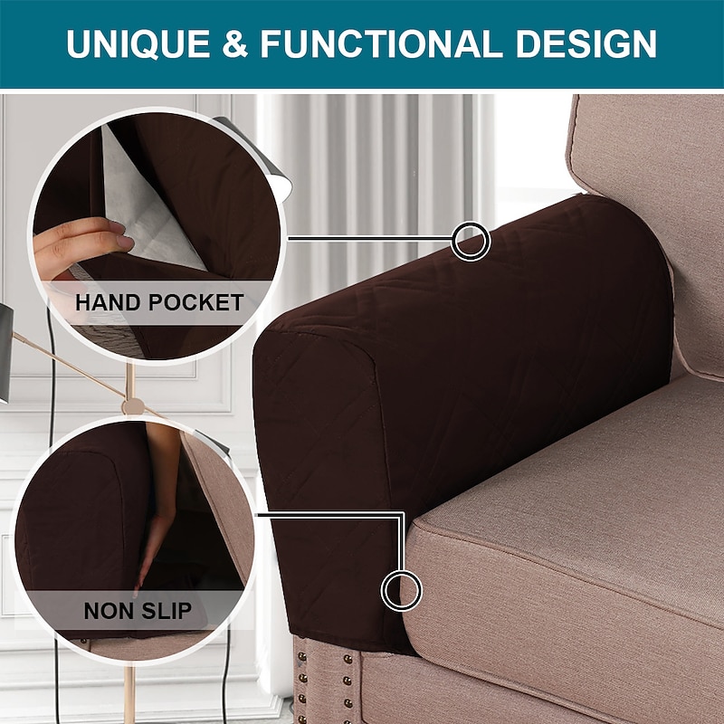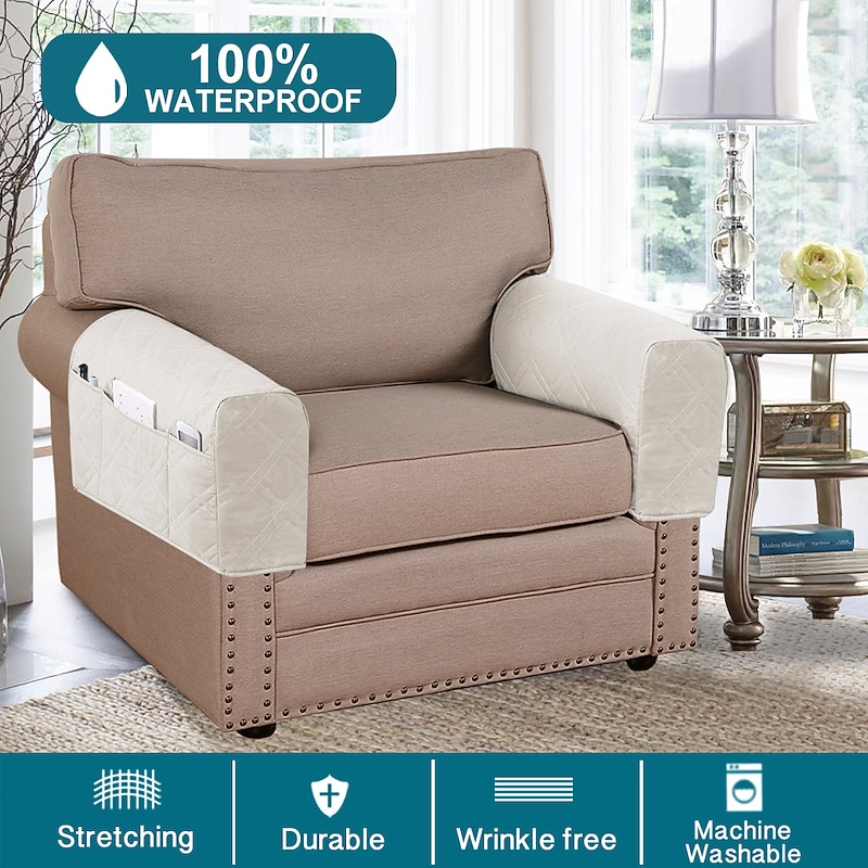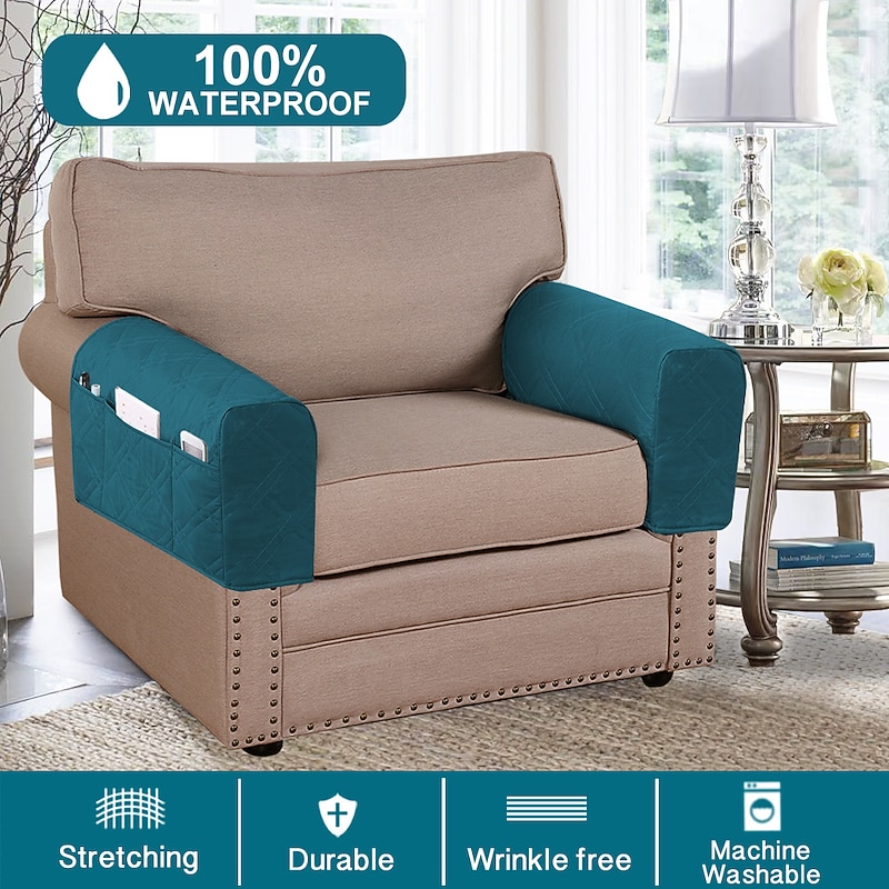 HOT ! 2 Pcs 100% Waterproof Armrest Covers for Chairs and Sofas Couch Arm Covers for Sofa Armrest Covers with Side Pocket Anti-Slip Furniture Protector Washable