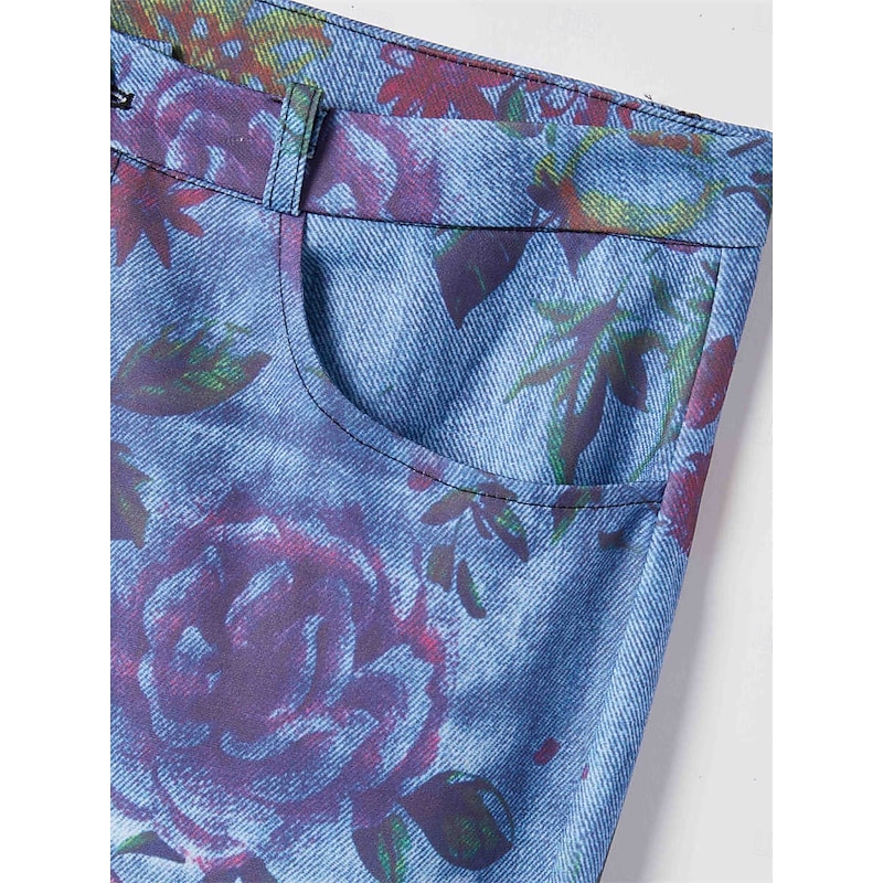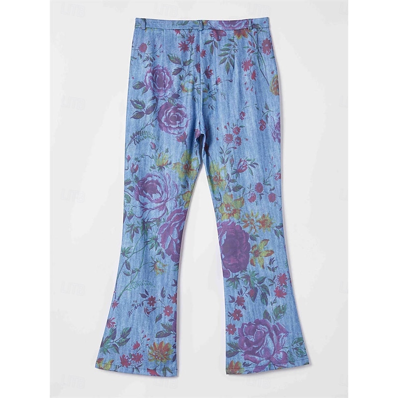 Women's Flared Pants Bell Bottom Pants Trousers Fashion Full Length Mid Waist Skull Flower / Floral Side Pockets Wide Leg Print Comfort Micro-elastic Halloween Weekend Navy-blue Rainbow Sky Blue And 31