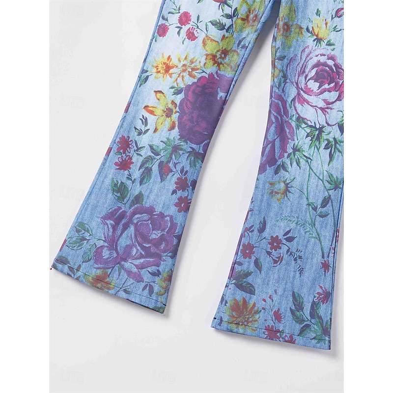 More information about Women's Flared Pants Bell Bottom Pants Trousers Fashion Full Length Mid Waist Skull Flower / Floral Side Pockets Wide Leg Print Comfort Micro-elastic Halloween Weekend Navy-blue Rainbow Sky Blue And