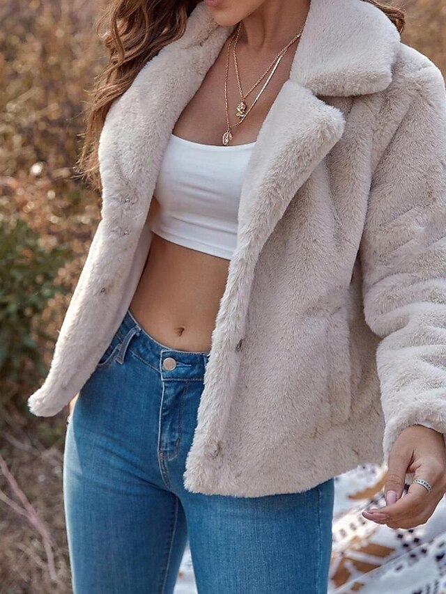 $49.99 - Women's Teddy Coat Faux Fur Coat Warm Comfortable Pocket Buttons Casual Plain Vacation Street Daily Wear Going out Regular Turndown Regular Fit Long Sleeve Outerwear Light Grey Fall Winter 2025. Shop for cheap Furs & Leathers online? Buy at lightinthebox.com on sale today!