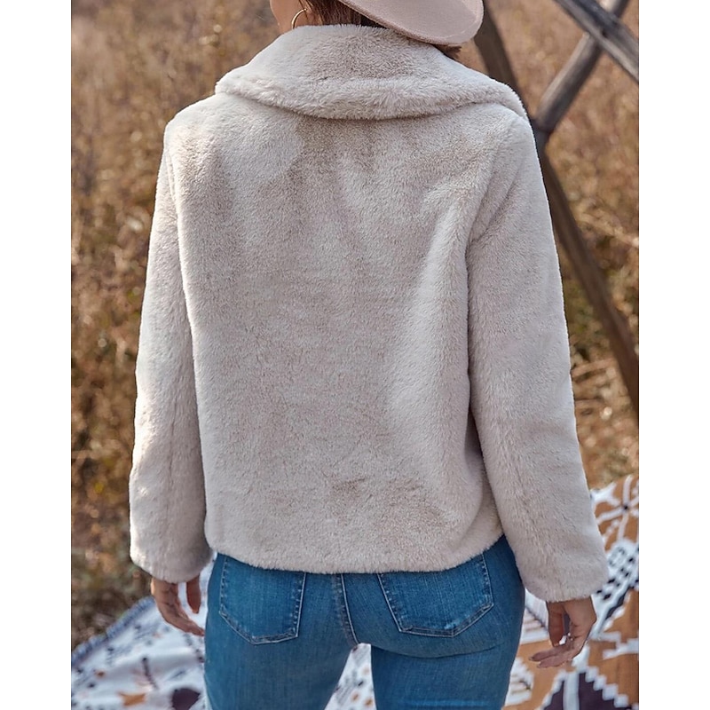More information about Women's Teddy Coat Faux Fur Coat Warm Comfortable Pocket Buttons Casual Plain Vacation Street Daily Wear Going out Regular Turndown Regular Fit Long Sleeve Outerwear Light Grey Fall Winter