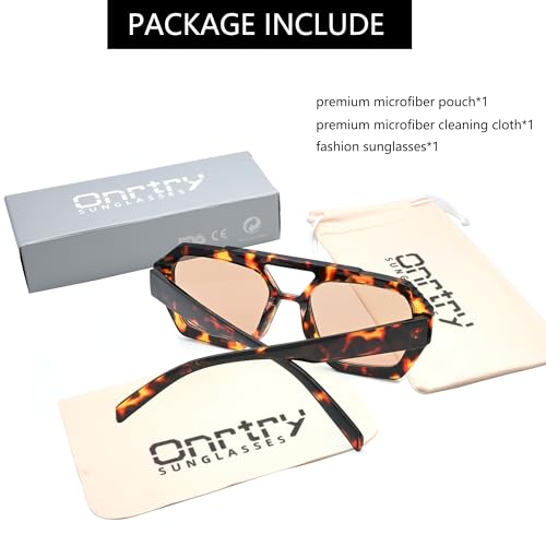 Onrtry Trendy Hexagonal Aviator Sunglasses for Women Thick Square Frame Double Bridge Sun Glasses 5