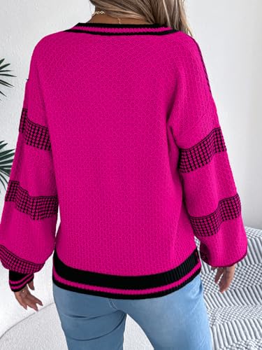 yoeasy Womens Striped Sweaters Color Block Long Sleeve V Neck Fall Trendy Knit Loose Casual Pullover Sweater Jumper Tops 6