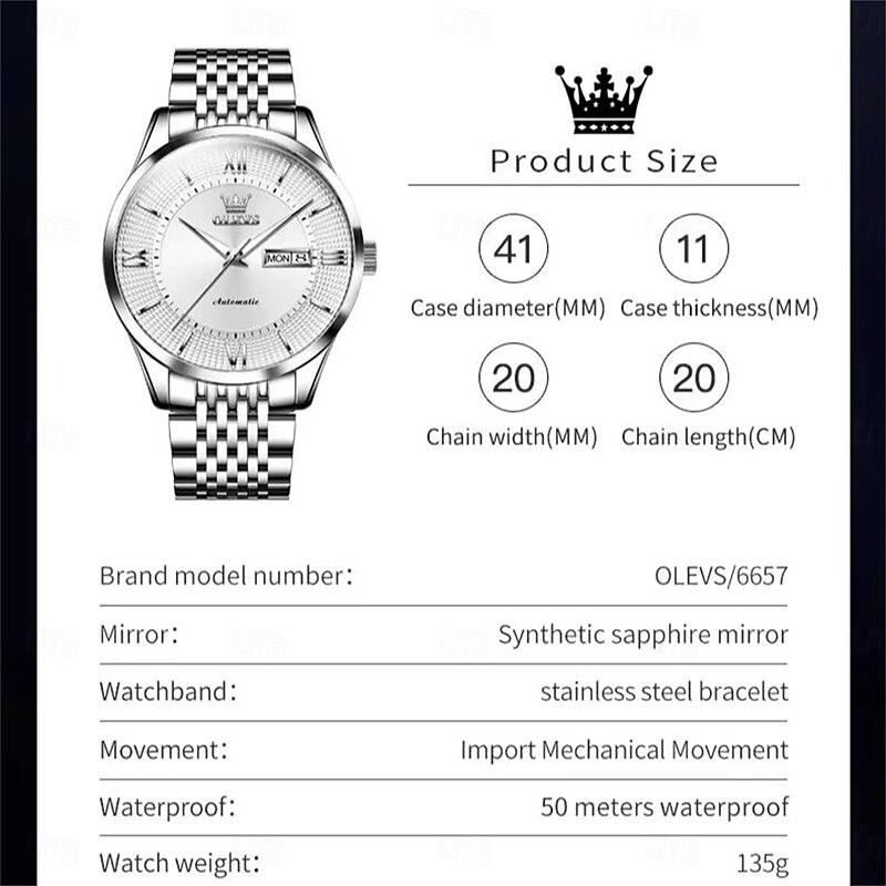 $94.99 - OLEVS 6657 Men's Luxury Brand Automatic Watch Business Calendar 50m Waterproof Mechanical Watch Gold Sapphire Mirror Men's Watch 2025. Shop for cheap Mechanical Watches online? Buy at lightinthebox.com on sale today!