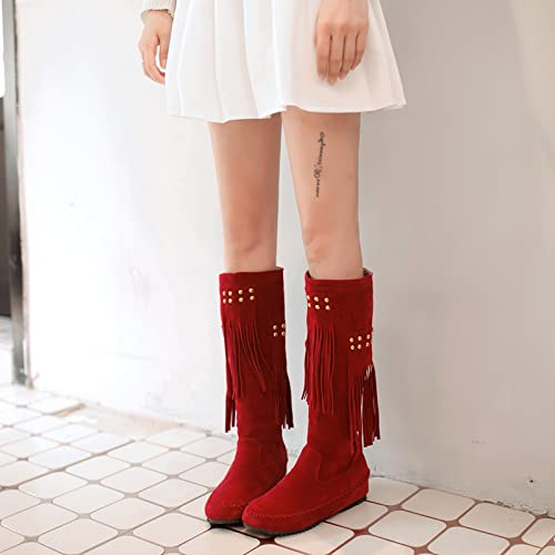 Womens Knee High Fringe Moccasin Wedge Boots 7