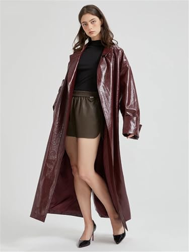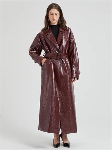 More information about Women Spring Extra Long Leather Trench Coat For With Belt Elegant Designer Maxi Overcoat