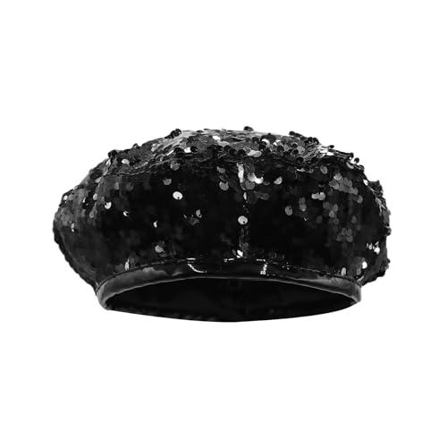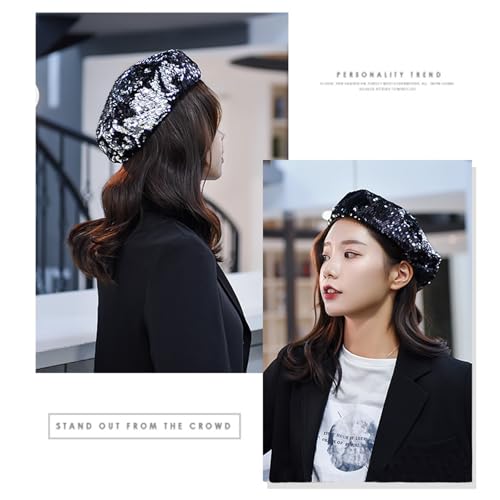 Sequin Beret Artist Hat Bling French Beret Hats for Women Girls Glitter Mermaid Cap for Dancing Party Accessories