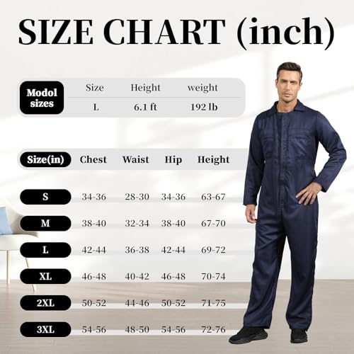 • Classic Design with Attention to Detail: Featuring a timeless design, this long-sleeve mechanic jumpsuit includes practical front and side pockets, complemented by zipper and button details that enhance both style and functionality.