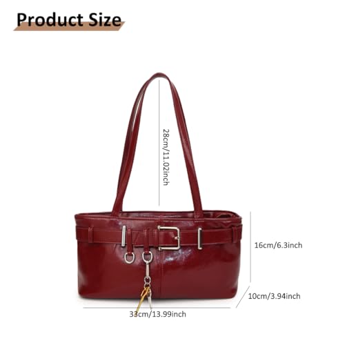 More information about Vintage Y2K Shoulder Bag for Women,Small Belt Buckle Satchel Purse Leather Handbag Clutch Purse, Underarm Tote Handbag for Daily Use - Wine Red