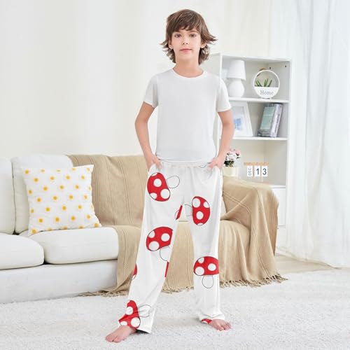 HOT ! Red Mushroom Boys Pants Boys Athletic Pants Long Pant for Boywith Pockets Wide-Leg Size 6-14Y