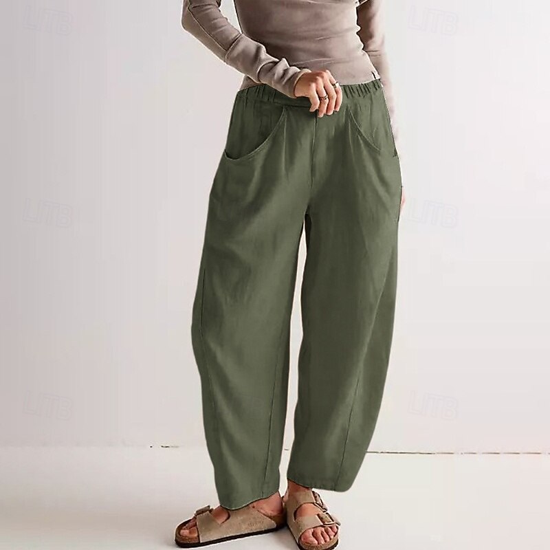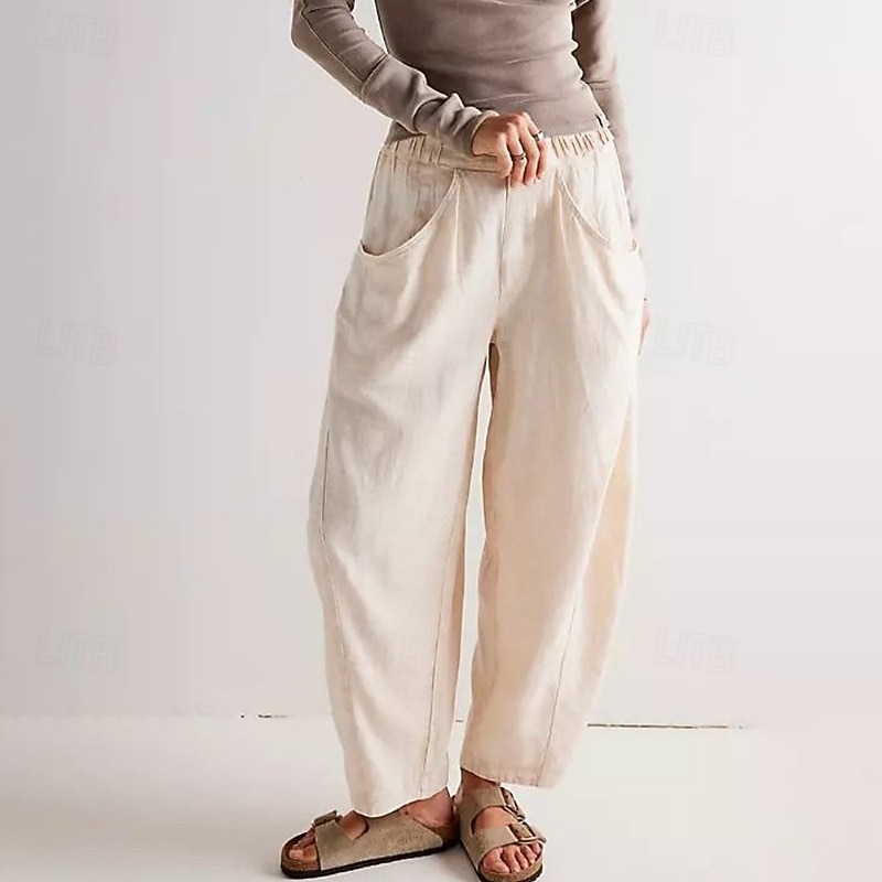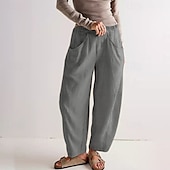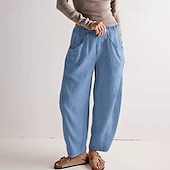 More information about Women's Cotton Linen Pants Slacks Streetwear Casual Full Length Natural Plain Pocket Elastic Waist Comfy Comfortable Street Daily Wear Depression Green Light Sky Blue Grey Black Summer Regular Fit