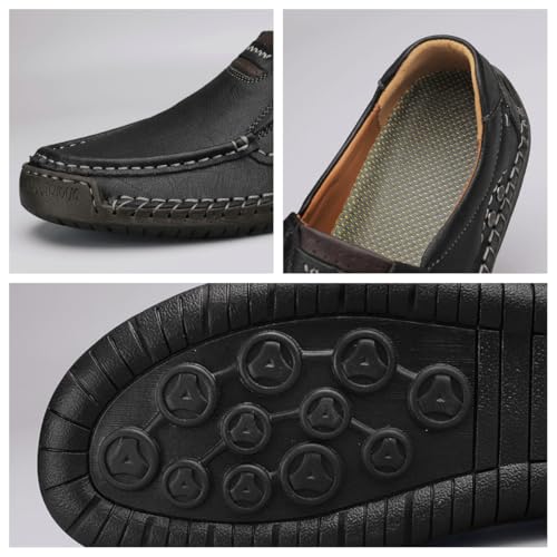 Men's Slip-On Loafers Hand-Stitched Driving Shoes Soft Rubber Sole, Breathable Lining Low-Top Round-Toe Design for Business Casual & Casual Attire 5