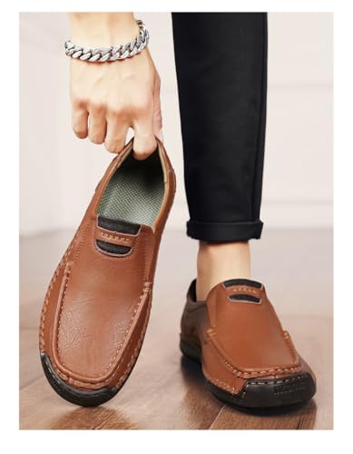 Men's Slip-On Loafers Hand-Stitched Driving Shoes Soft Rubber Sole, Breathable Lining Low-Top Round-Toe Design for Business Casual & Casual Attire 7