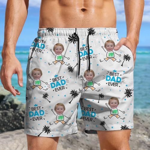 More information about Custom Photo Best Dad Ever Coconut Palm Beach Short Upload Photo With Pattern Men's Beach Short 3D Printed Beach Board Shorts with Pockets Cool Mesh Lining, Personalized Kid's Face Beach Board Shorts