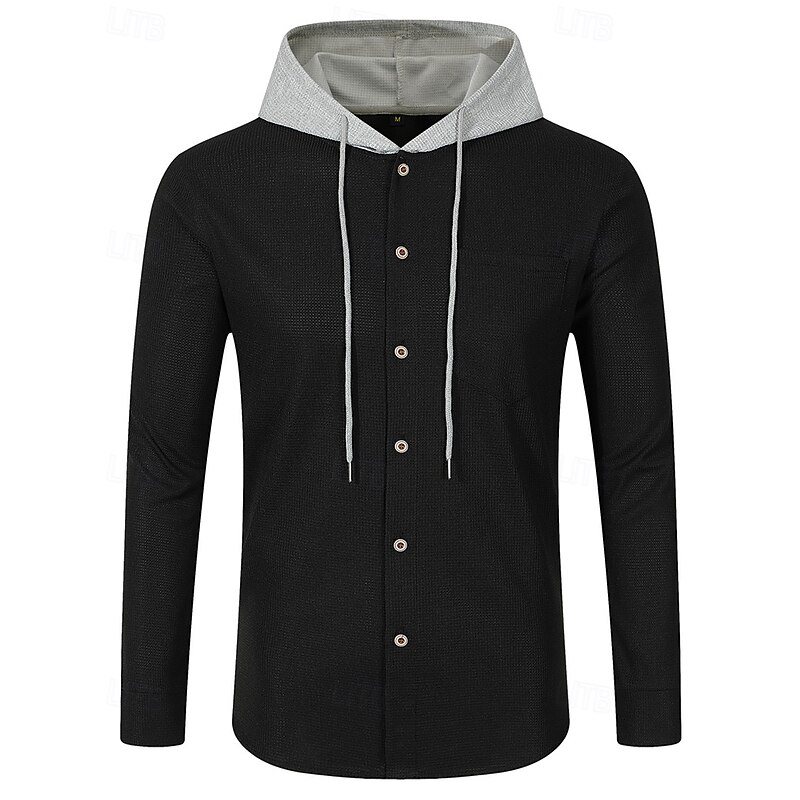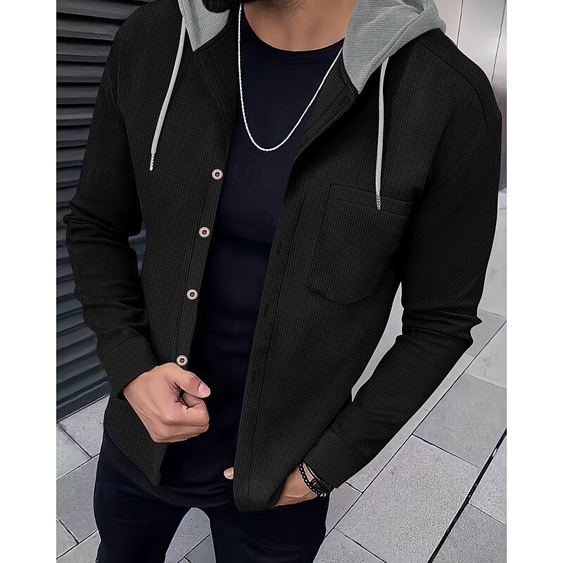 More information about Men's Lightweight Jacket Summer Jacket Shirt Jacket Transition Jacket Vacation Daily Warm Pocket Spring & Fall Color Block Fashion Classic Hooded Regular Black White Royal Blue Khaki Gray Jacket