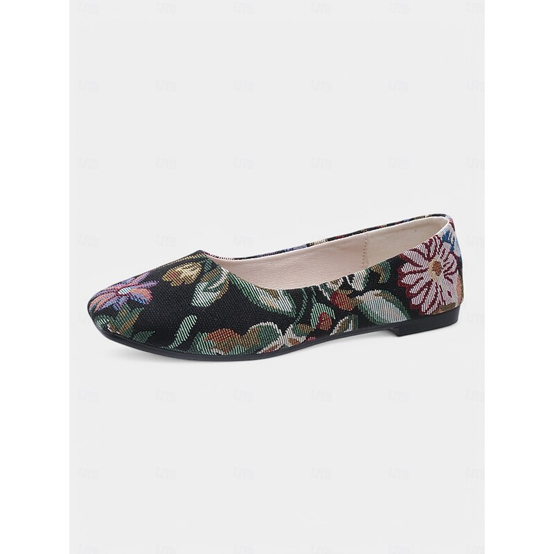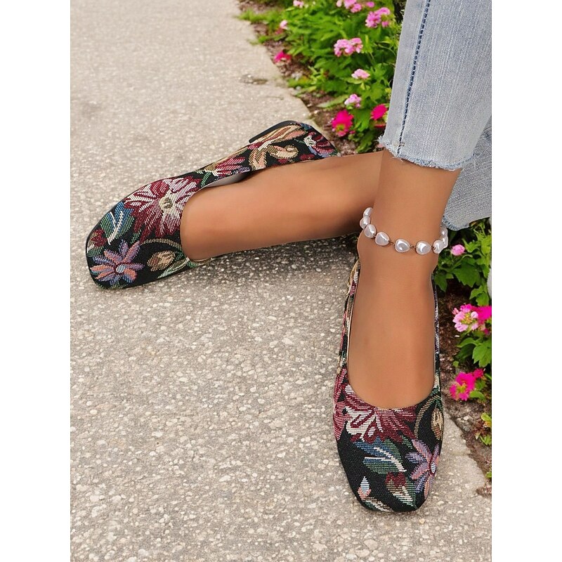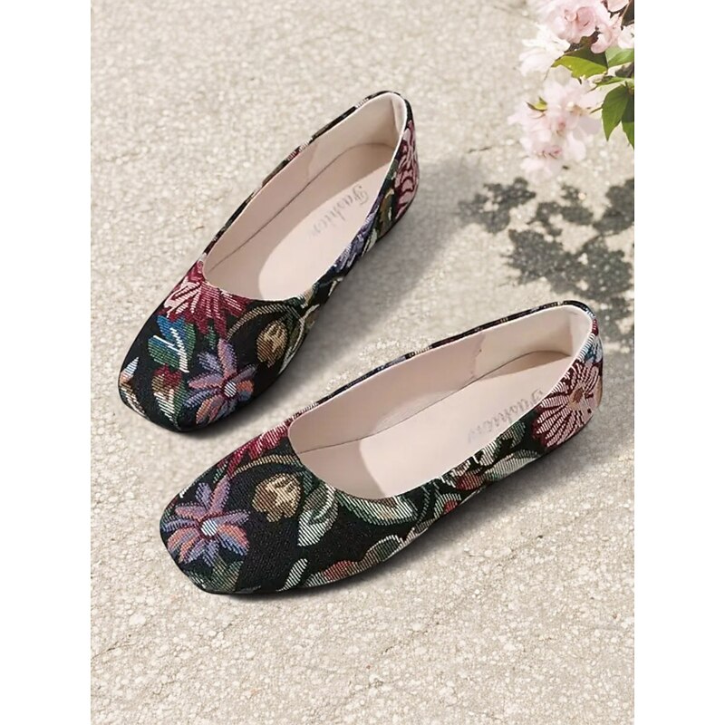 HOT ! Floral Embroidered Comfort Flats for Women - Stylish Black Casual Shoes, Ideal for Everyday Wear