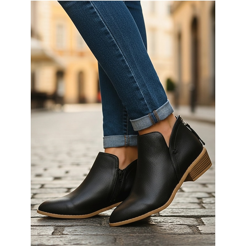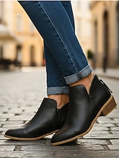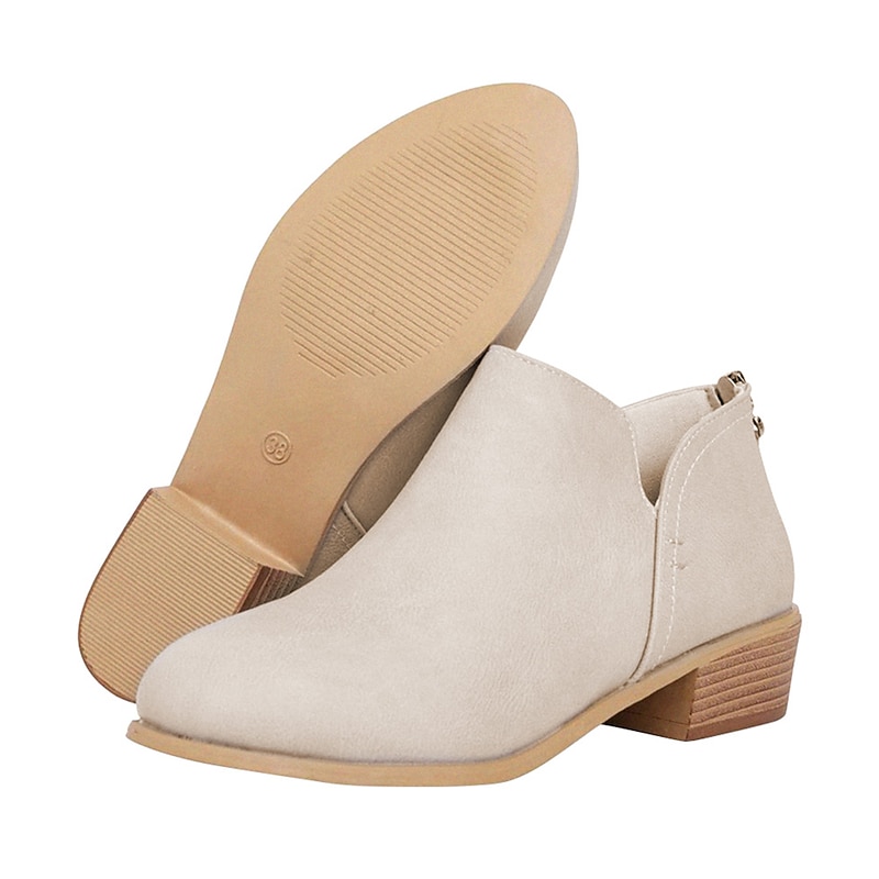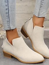 Highlights [Fabric] : Crafted from high-quality faux leather with a suede-like finish, these women's ankle boots offer a luxurious and soft texture, providing both style and comfort for all-day wear. [Silhouette] : Designed in the classic Western style, these boots feature a contemporary low Cuban heel, perfect for adding subtle height without compromising on comfort. The round toe silhouette further enhances their elegant appearance. [Design Highlights] : These slip-on booties boast side stretch panels that allow for a flexible and snug fit, while the sleek solid color adds a touch of minimalism. The cut-out patterns subtly emphasize the boots’ fashionable appeal, making them ideal for various stylish looks. [Occasions] : Versatile and trendy, these ankle boots are perfect for daily wear, outdoor activities, or a casual office day. Their understated elegance makes them suitable for different occasions, effortlessly complementing a variety of outfits. [Size Notice] : Available in multiple sizes to ensure a perfect fit, customers are advised to select one size larger than usual. The size range includes US6 to US10.5, guaranteeing options for a wider foot size spectrum.