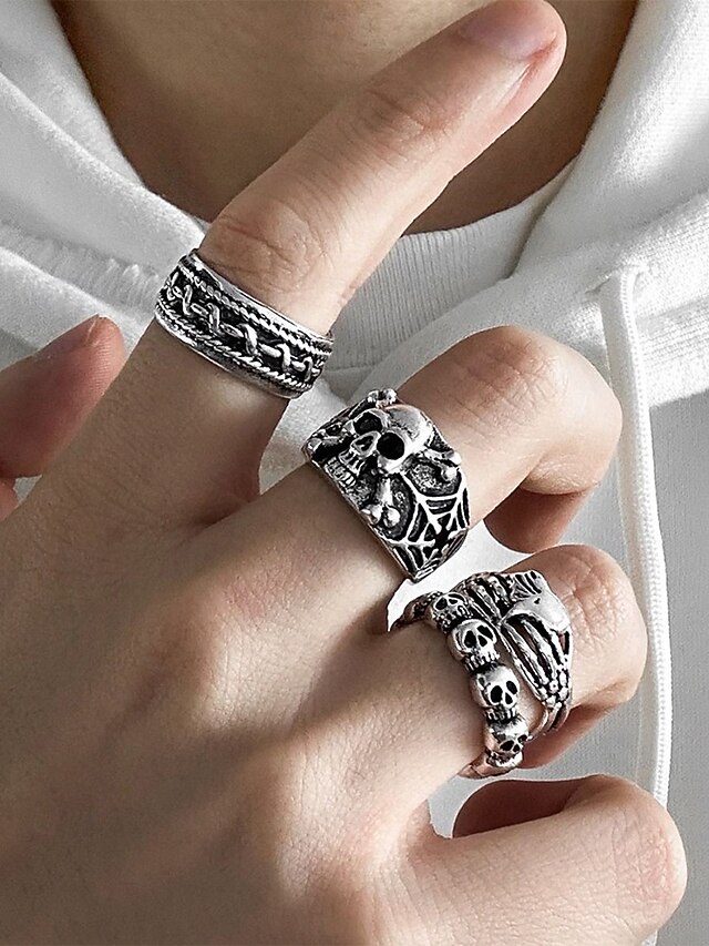 $7.99 - Men's Halloween Skull Rings Set – Gothic Punk Vintage Alloy Jewelry for Party, Biker, Cosplay and Festival Wear 2025. Shop for cheap Halloween Accessories online? Buy at lightinthebox.com on sale today!