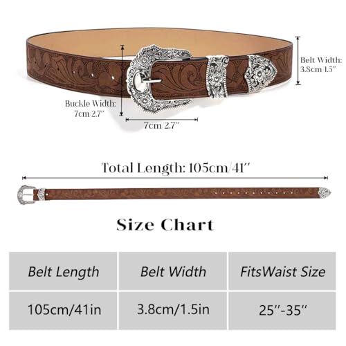 Tgirls Brown Western Belts Cowboys Cowgirls Belt for Jeans Vintage Country Leather Belt 3