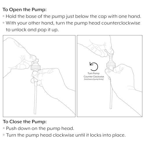 • CAPACITY: Each plastic bottle 8 oz. = 1 cup = 235 ml; SIZE: 8.5 inches tall (pump open); 2.7 inches length, 1.5 inches width