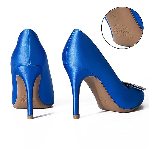 Trary Women's Stiletto High Heels Pumps Wedding Closed Toe Heels Sparkly Rhinestone Sexy Elegant Women's Pumps Party Bridal Dress Shoes for Women with Jewel Buckle 5