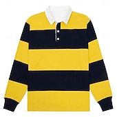 More information about Men's Stripes Rugby Polo Long Sleeve Polo Shirts Collared Shirts Casual School Outdoor Athleisure 3D Print Spring Fall Yellow