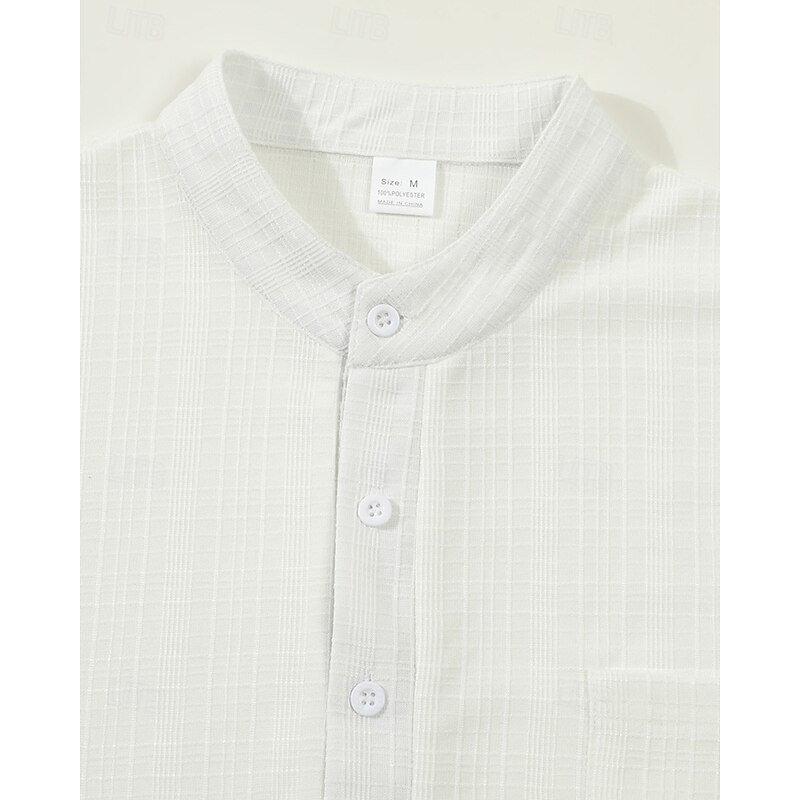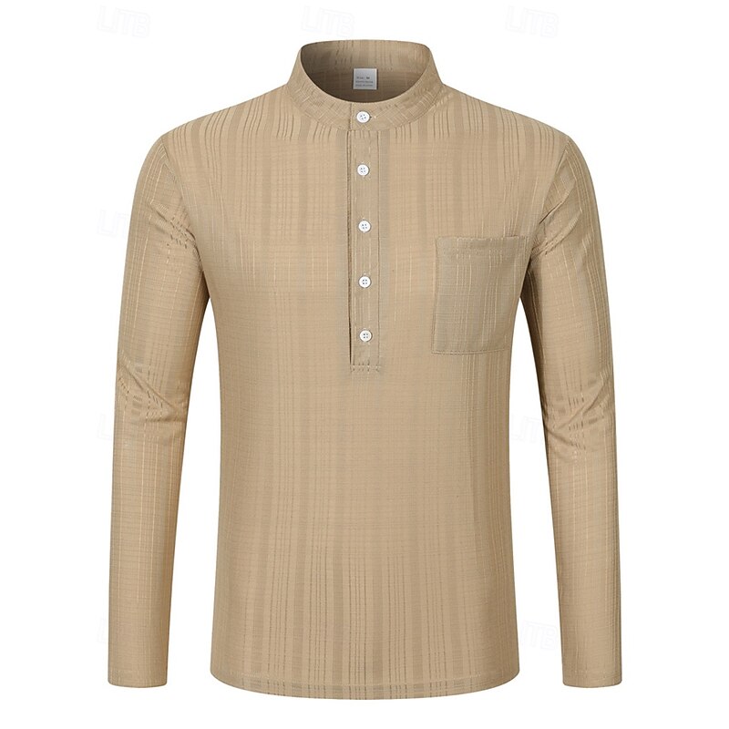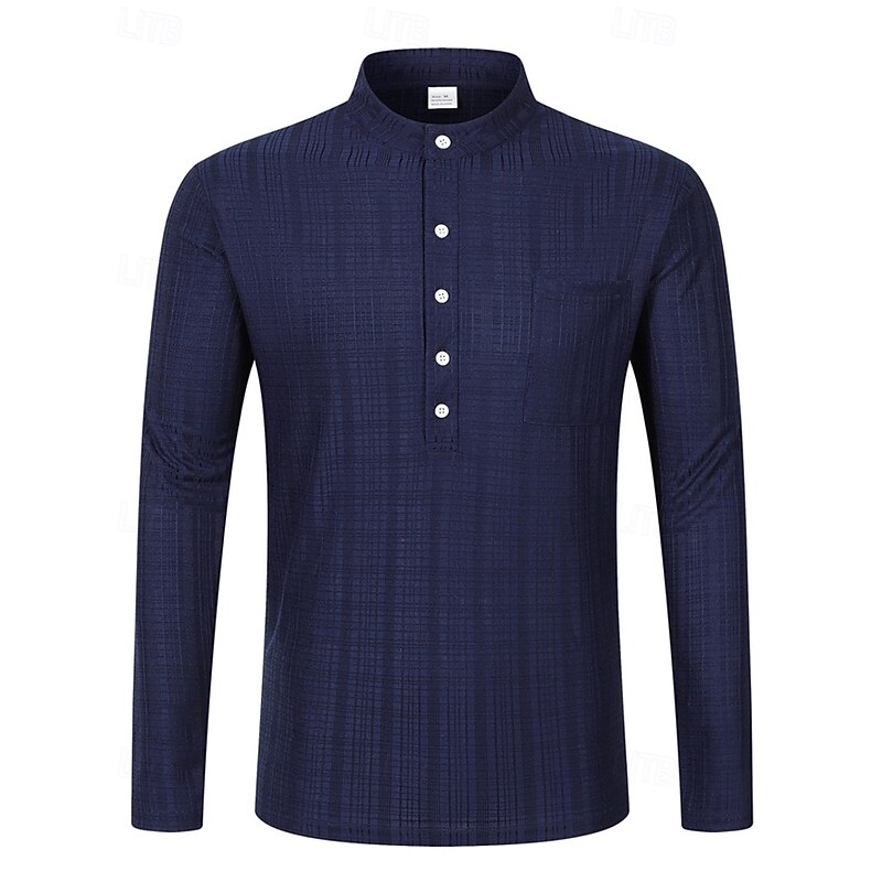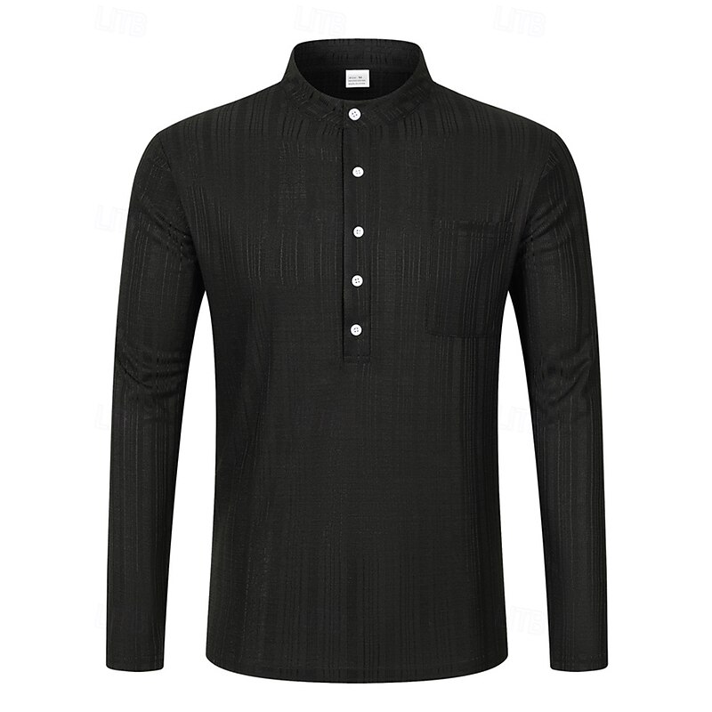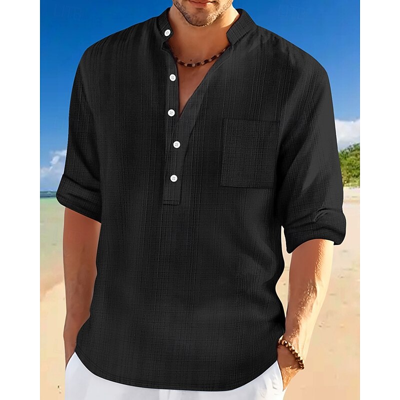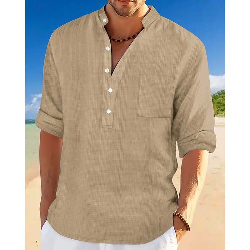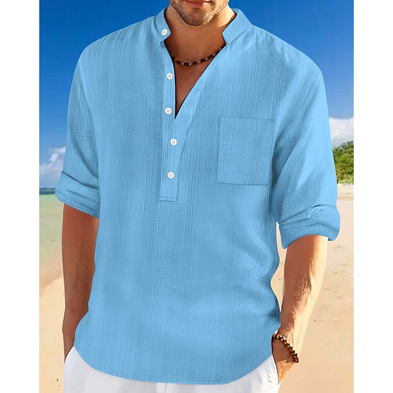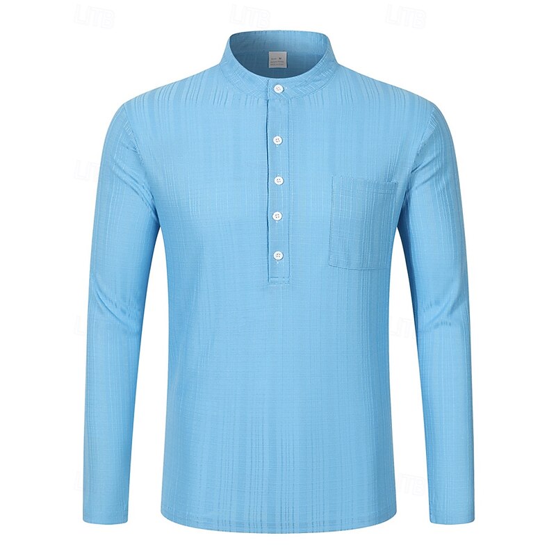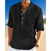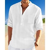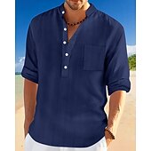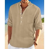 More information about Men's Shirt Linen Shirt Popover Shirt Casual Shirt Cotton Shirt Plain Vacation Hawaiian Black White Navy Blue Sky Blue Long Sleeve Band Collar Spring Fall Clothing Apparel Pocket