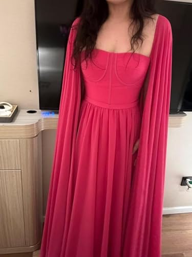 More information about Elegant Strapless Chiffon Prom Dress A-Line Ruffled Long Formal Evening Dress with Cape for Women