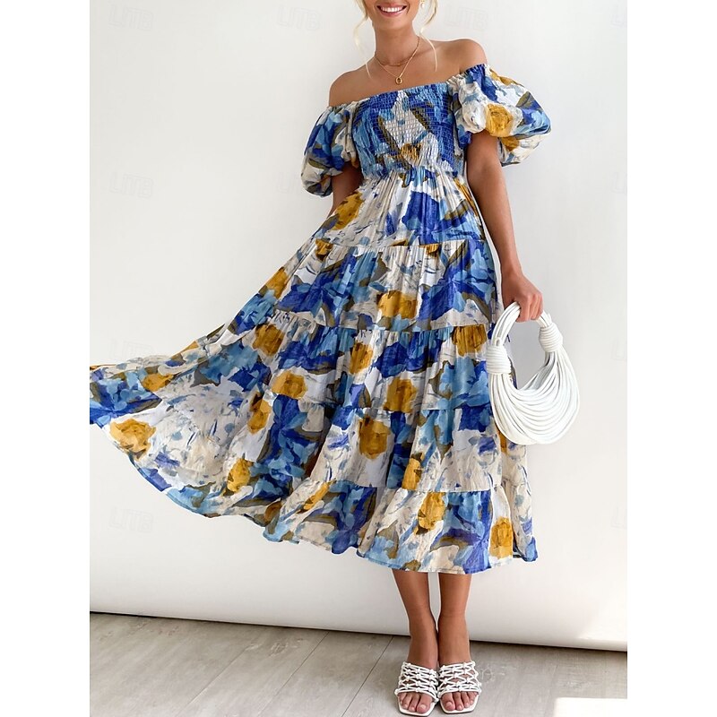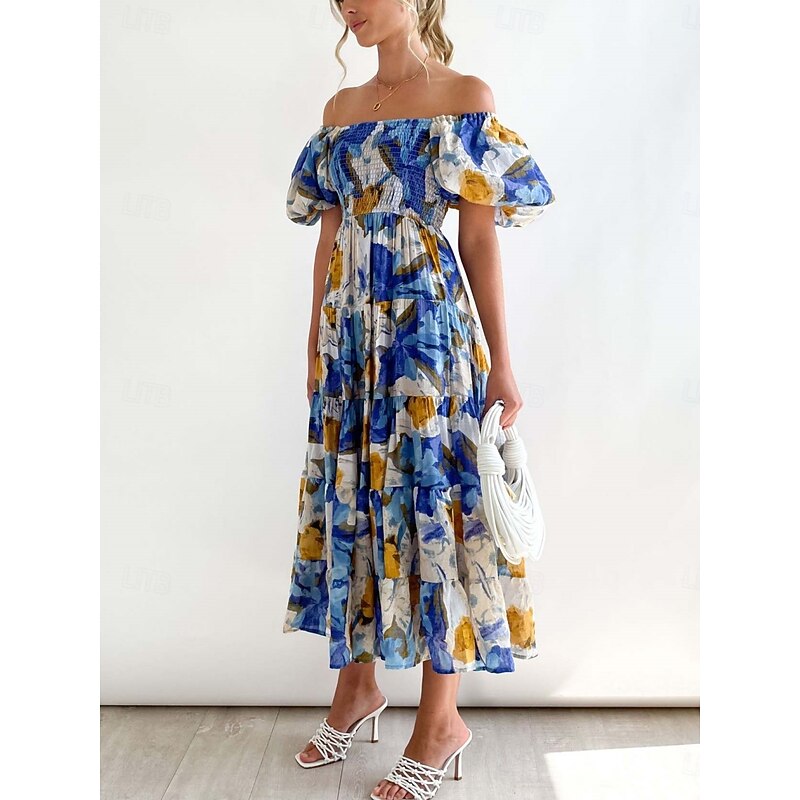 More information about Women's Maxi Dress Casual Dress Swing Dress A Line Dress Stylish Casual Vacation Daily Regular Fit Floral Short Sleeve Off Shoulder Blue Green Summer