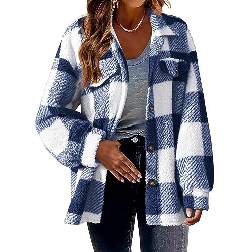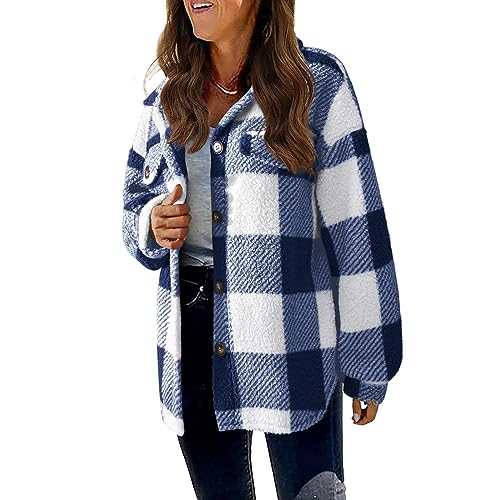 Generic Womens Flannel Shacket Jacket Plaid Button Down Long Sleeve Lapel Shirt Coat Trendy Casual 2024 Fall Fashion Clothes