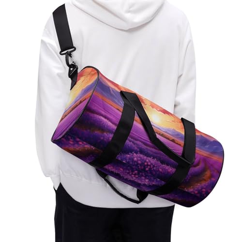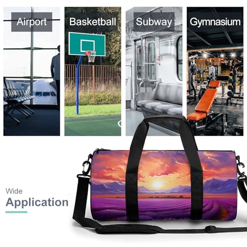 Lavender Field Purple Flower Sunset Travel Duffel Bag Gym Bags Sports Tote Shoulder Weekender Handbag for Men Women