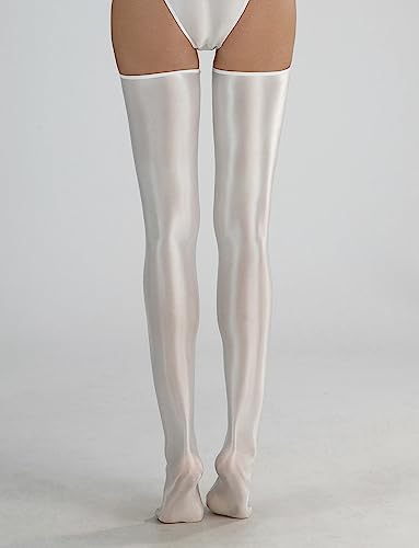FEOYA Women's Opaque Oil Shiny Thigh High Stocking Glossy Pantyhose Silk Tights Sockings for Party Club