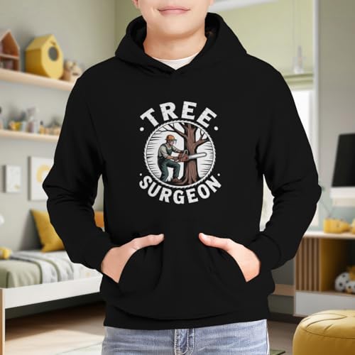 Kids Retro Tree Surgeon Arborist Chainsaw Lumberjack Boys Girls Lightweight Kangaroo Pocket Fleece Hoodies