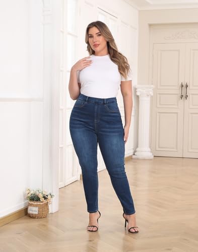 trending ! HDE Women's Plus Size Skinny Jeans Pull On Stretch Denim Jegging with Pockets