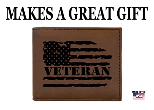 Brand: Rogue River TacticalColor: BrownMaterial: LeatherStyle: Leather WalletPattern: FlagThis USA Tattered Distressed Flag Veteran Bi-Fold Leather Wallet Makes a Great Gift To Any Patriotic American or Military VeteranPerfect Gift Idea For Him, Dad, Father, Brother, Uncle, Grandpa, Cousin, Boyfriend, Friend, Or Any Man In Your Life.Lightweight superior Leather Men's Wallet Billfold is The Prefect Size 4.5 by 3.5 To Fit In Any Pocket. resilient Stain Resistant Custom Design With 2 Compartments For Bills, Photo ID Holder and RFID Blocking Protection As Well as Plenty of Slots for Credit CardsThis Leather Wallet Makes a Great Gift Idea For Father's Day, Christmas, or Birthday Present.Made In The USA Our Lightweight Leather Wallets Are Laser Engraved and Made To Last. Perfect for everyday use. High quality materials and excellent craftsmanship ensure long-lasting durability.