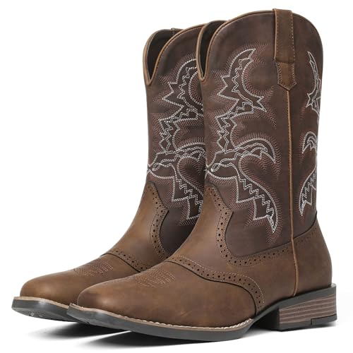 Why Choose Mens Cowboy Boots Square Toe Western Boots Pull On Slip Resistant Work For Men Traditional Country Mid Calf Chunky Heel Embroidered Ankle Booties?
