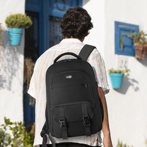 trending ! MOMUVO School Backpack for Teens Boys and Girls,15.6 Inch Laptop Backpack Unisex Bookbag with USB Charging Port Water-Resistant Schoolbag Casual Daypack-Black